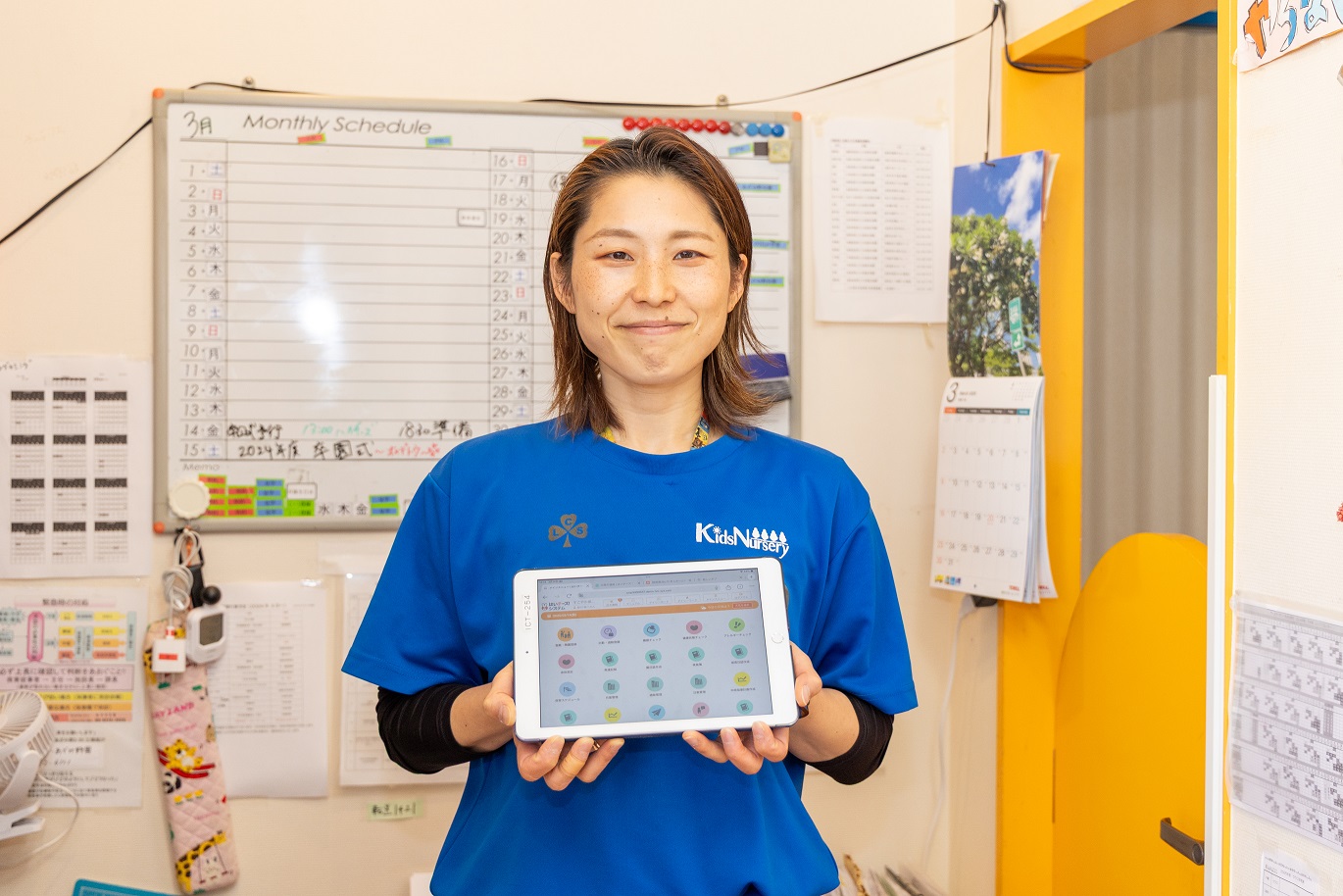 現在活用しているのは、連絡帳・日誌・午睡チェック・身体測定・発達記録・月案・週案・延長料金の管理などです。これらの記録系業務は以前すべてパソコンで行っていたので、タブレットで簡単に入力・管理できるようになったのはとても便利です。
